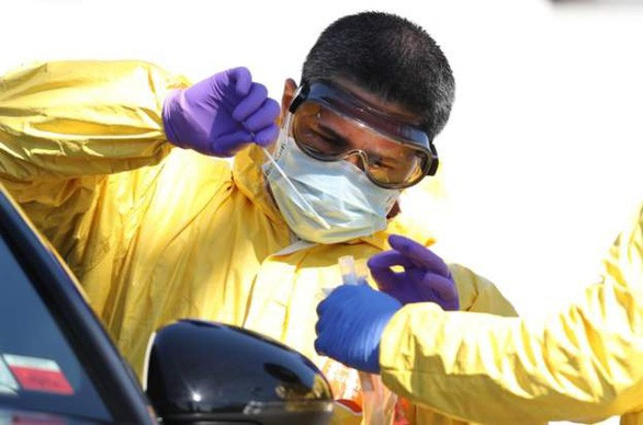 Nhân viên y tế lẫy mấu xét nghiệm sàng lọc COVID-19 ở New York, Mỹ - Ảnh: GETTY IMAGES