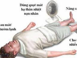 + đặt nạn nhân vào bồn nước mát hoặc để nạn nhân dưới vòi tắm hoa sen nước mát.