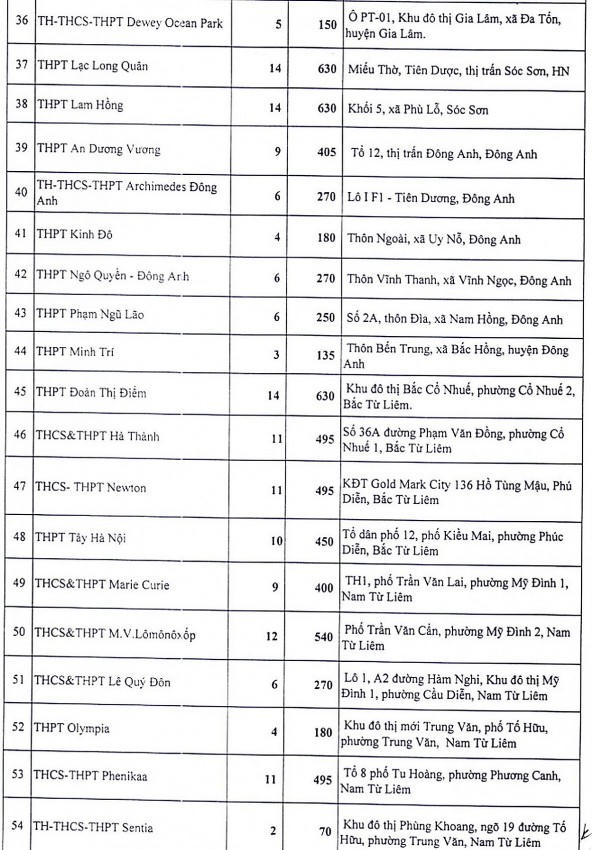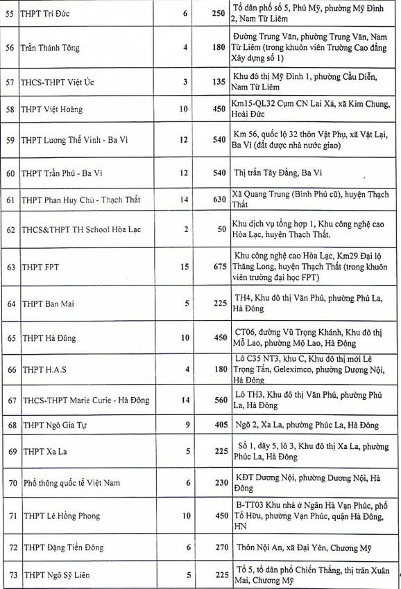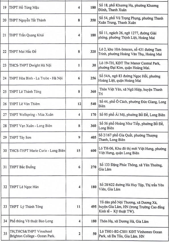 Trong đó ba trường tuyển nhiều nhất là THPT Hoàng Mai, FPT, Lương Thế Vinh, với 675 học sinh mỗi trường.