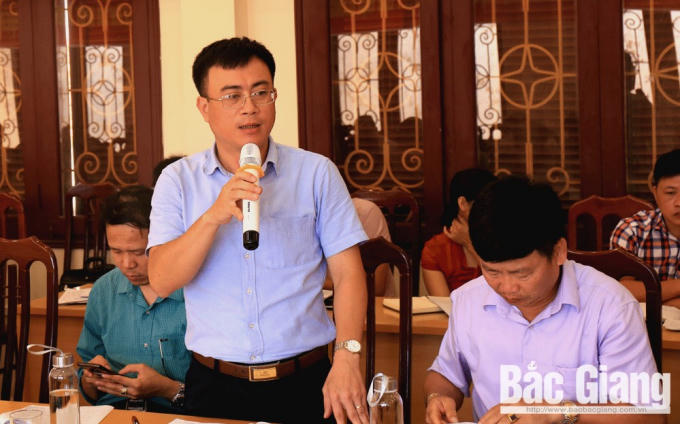Ông Đào Duy Trọng phát biểu trong một hội nghị trao đổi về công tác quản lý đất đai. Ảnh Báo Bắc Giang.