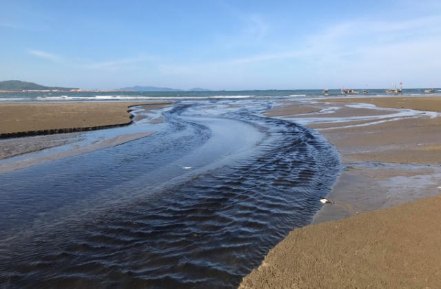 Dòng khe Chùa bị nhuộm đen, trước lúc đổ ra biển.