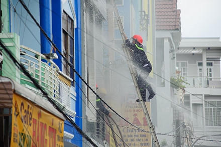 Do căn nhà có chứa nhiều vật dụng dễ cháy như vỏ xe, dầu nhớt…nên lửa cháy rất dữ dội, các chiến sĩ PCCC phải bắc thang trèo từ bên ngoài vào tầng 1 để dập lửa. Sau khoảng gần 2 giờ, đám cháy được khống chế.