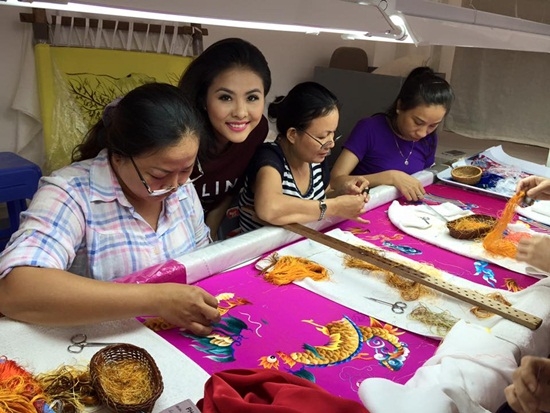 | 6 nghệ nhân đã phải làm trong 3 tháng để thêu họa tiết trên trang phục cưới. |