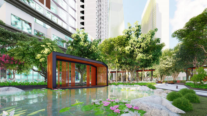 Ngoài ra, trong bối cảnh nhiều dự án bị bê tông hóa với mật độ xây dựng cao do quỹ đất hạn hẹp thì The Matrix One vẫn được bao bọc bởi hệ thống cây xanh dày đặc. Với thiết kế mang hơi thở Á Đông, những khu vườn được bố trí ở tầng 1, tầng mái với những khóm cây trồng theo nhiều tầng lớp, đảm bảo độ phủ xanh tối đa cho dự án, giúp giảm tiếng ồn, khói bụi, điều hòa không khí và giảm ô nhiễm môi trường.