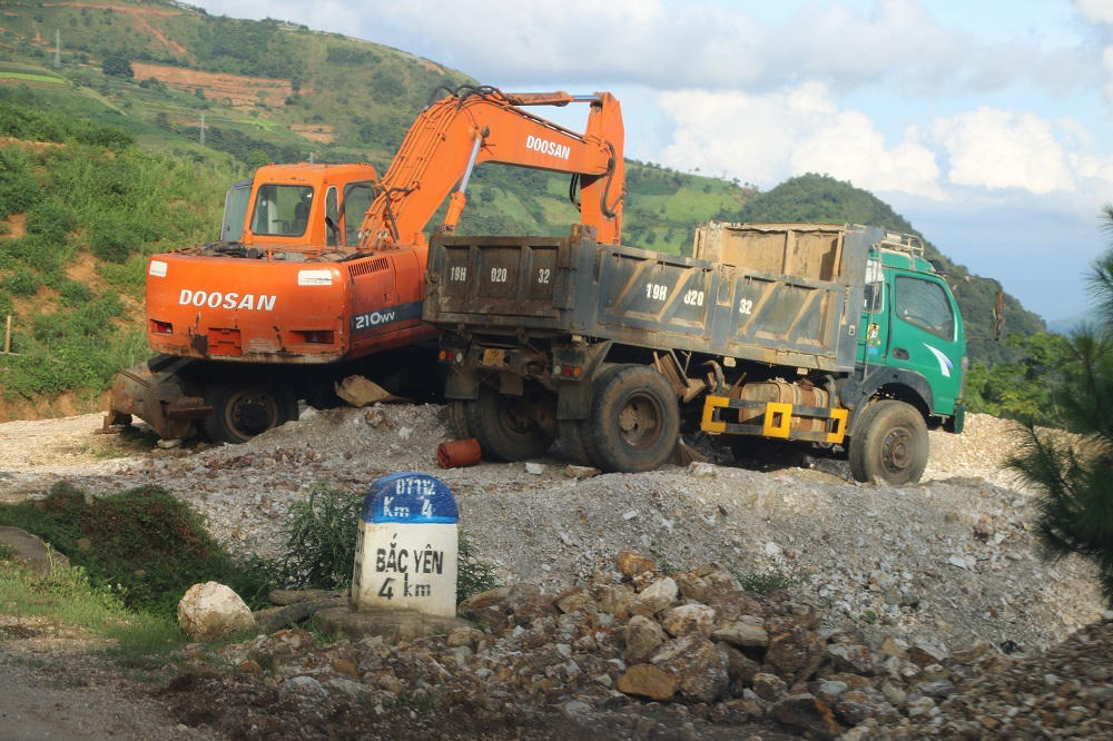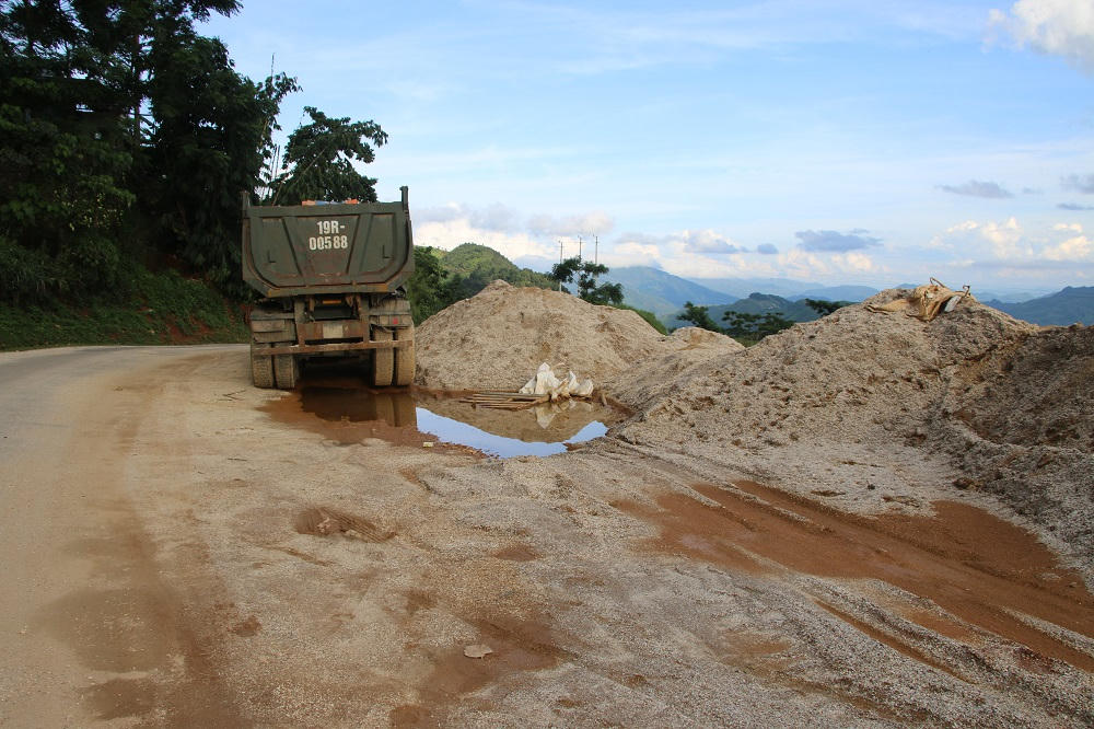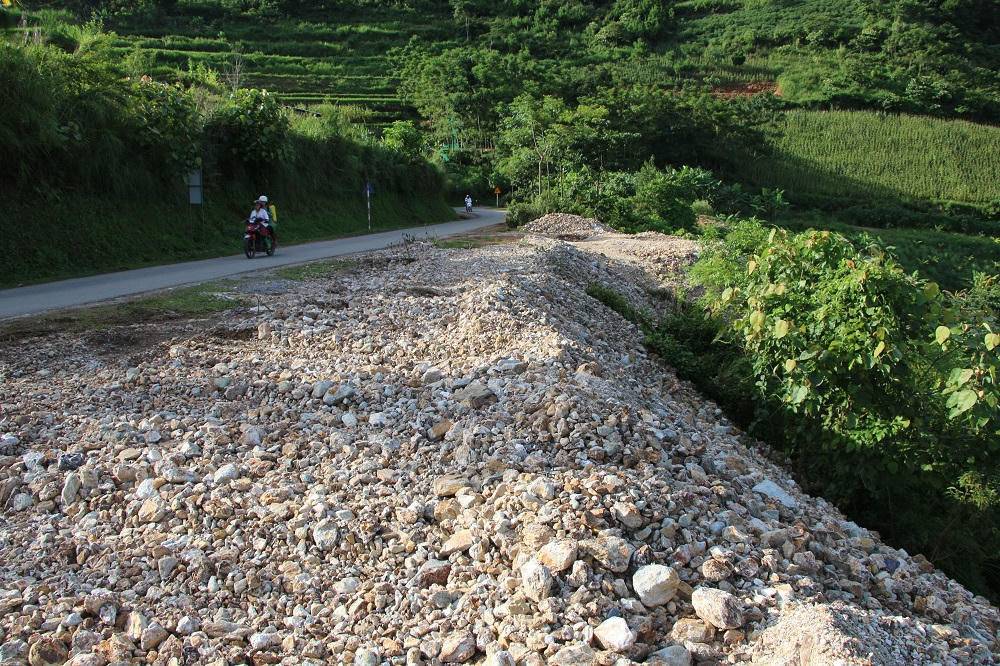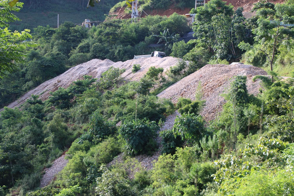 Bãi tập kết vật liệu, đổ thải ngay phía taluy âm tỉnh lộ 112, do độ dốc lớn nên đã làm hàng nghìn khối đất đá tràn xuống các khe thấp lấp cây cối, đất sản xuất của người dân...