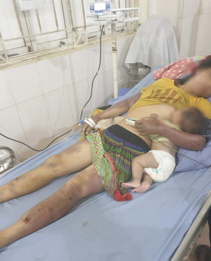 Chị M đang nuôi con nhỏ nhưng vẫn bị chồng đánh phải nhập viện cấp cứu.
