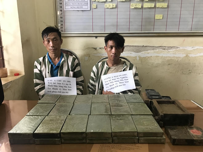 Các đối tượng bị bắt gồm: Lầu A Chừ (tên gọi khác là Lầu A Mua, SN 1981) và Giàng A Mai (SN 1997), cùng trú tại xã Huổi Một, huyện Sông Mã, tỉnh Sơn La, thu giữ 36 bánh heroin, 2 điện thoại di động, 3 xe máy, trên 1 triệu đồng tiền Việt Nam và nhiều tang vật liên quan khác.