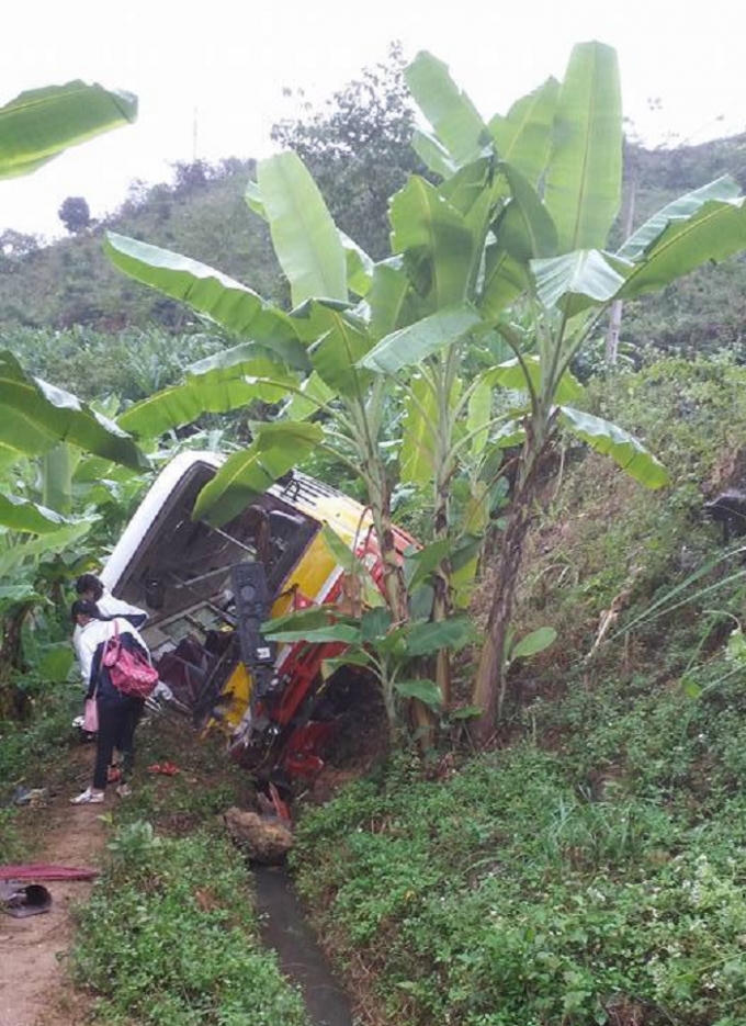Một chiếc xe buýt chở hàng chục học sinh đang lưu thông trên đường bất ngờ mất lái lao xuống vực sâu khiến nhiều học sinh bị thương.