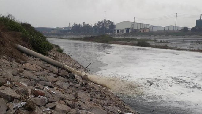 Nhiều nhà máy tái chế giấy ở xã Phú Lâm, huyện Tiên Du xả nước thải ra sông Ngũ Huyện Khê. Ảnh: Nguyễn Thắng