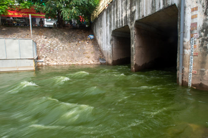 Sông Tô Lịch bất ngờ chuyển màu xanh sau khi nhận nước từ hồ Tây