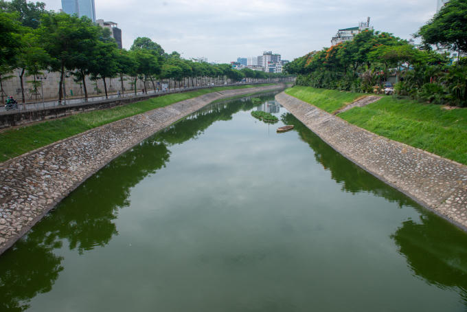 Mực nước đã giảm rất nhiều so với thời điểm Công ty Thoát nước Hà Nội mở cửa xả nước hồ Tây vào sông Tô Lịch, hiện tại chỉ còn khoảng 2m.