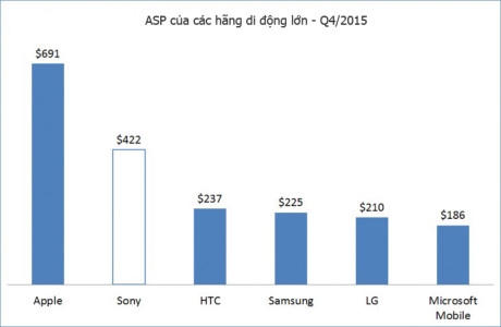 Trong quý IV năm ngoái, LG, HTC đều phải gánh lỗ cho mảng di động trong khi Sony Mobile làm ăn có lãi. Chẳng hạn, giá bán trung bình (ASP) của smartphone Xperia đang ở mức gấp đôi điện thoại LG. Khoảng cách này có xu hướng gia tăng trong các quý gần đây.