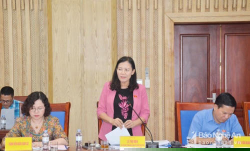 Chủ nhiệm UB Tư pháp Lê Thị Nga, trưởng đoàn giám sát của QH. Ảnh: Báo Nghệ An