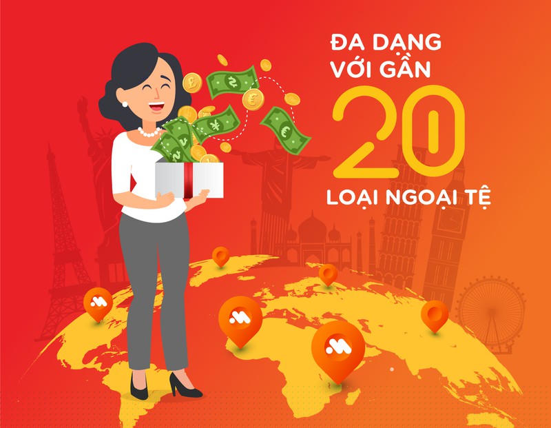 MSB cung cấp đa dạng gần 20 loại ngoại tệ khác nhau như USD, EUR, GBP, AUD, CAD, SGD, JPY…. với tỷ giá cạnh tranh và mạng lưới giao dịch rộng lớn, thuận tiện cho việc giao dịch của Khách hàng