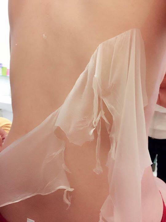 Quá trình quấn khăn, chị K. cảm thấy cơ thể nóng ran, sau đó nhân viên dùng móng tay lôi nhẹ thì từng tảng da mỏng như lớp nilon bị bong ra, lộ lớp da trắng hẳn trông thấy.