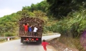 Phát hoảng với Clip trẻ em đu bám theo chiếc ô tô đang lưu thông trên quốc lộ