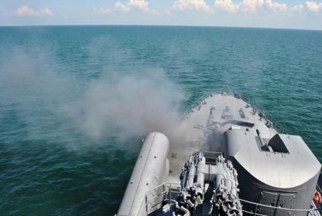 Hệ thống pháo hạm này được Liên Xô phát triển từ 1954-1959, chính thức triển khai trên các tàu chiến Liên Xô và các nước XHCN anh em sau này từ năm 1963. Ảnh: Pháo hạm AK-726 trên tàu khu trục của Hải quân Romania đang khai hỏa.