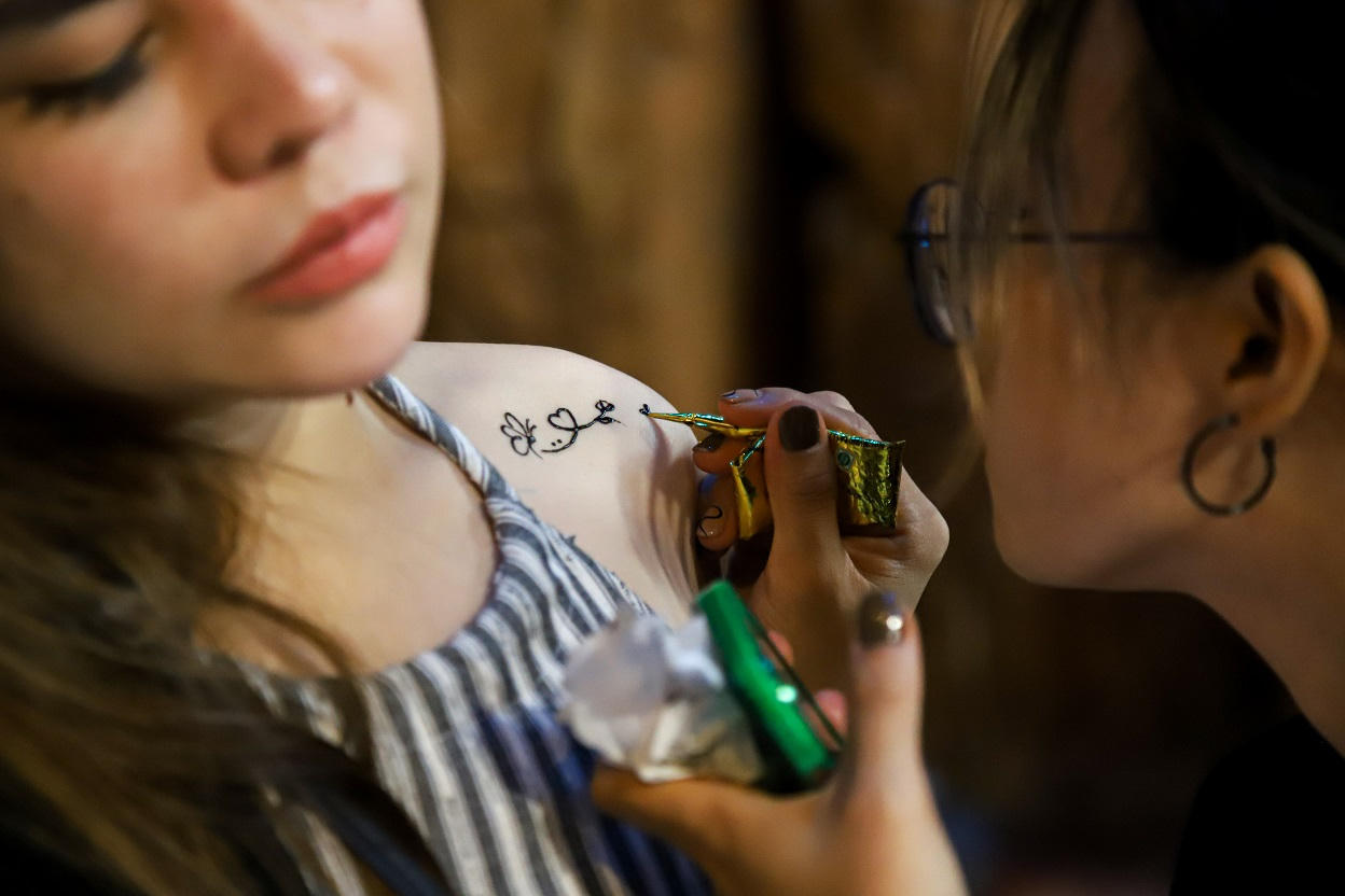 Không chỉ được tận hưởng không khí lễ hội mùa thu đầy màu sắc, du khách còn được trải nghiệm nhiều hoạt động giải trí, tương tác mang đậm phong cách văn hóa châu Âu và Việt Nam. Đặc biệt, góc trải nghiệm vẽ mặt, vẽ hình xăm, vẽ móng tay… thu hút rất đông du khách trẻ.