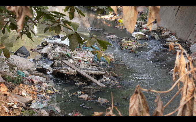 Dòng suối Linh ô nhiễm giữa lòng thành phố.