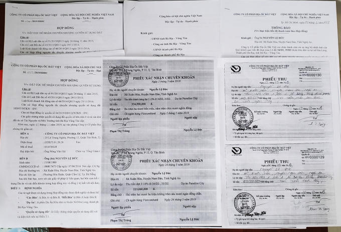 Hồ sơ, hợp đồng mà anh Đức đã ký, chuyển tiền cho Công ty Đất Việt.