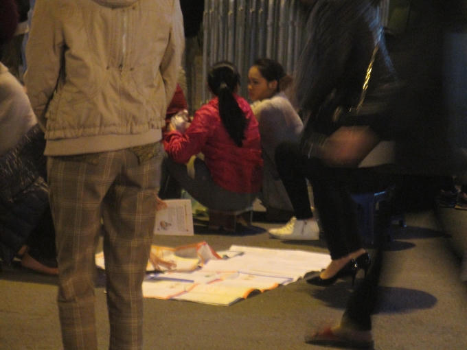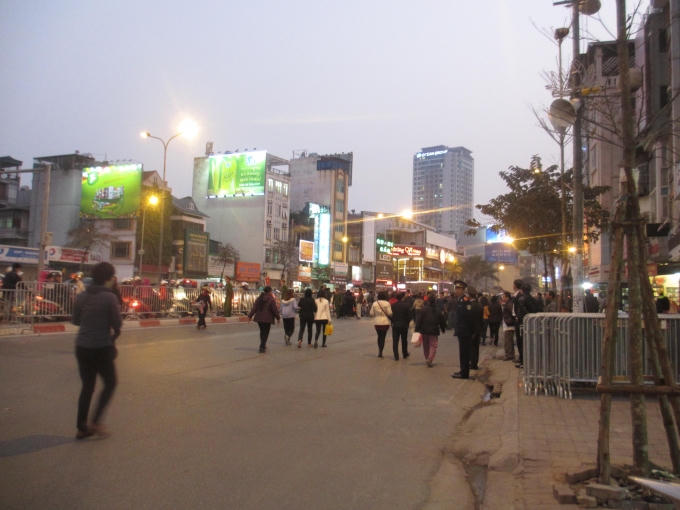 Mặc dù chưa đến 7h tối nhưng hàng nghìn người đã đổ về tại cổng chùa Phúc Khánh để làm lễ dâng sao giải hạn đã chật cứng, gây tắc đường tại phố Tây Sơn đoạn chân cầu Ngã Tư Sở.