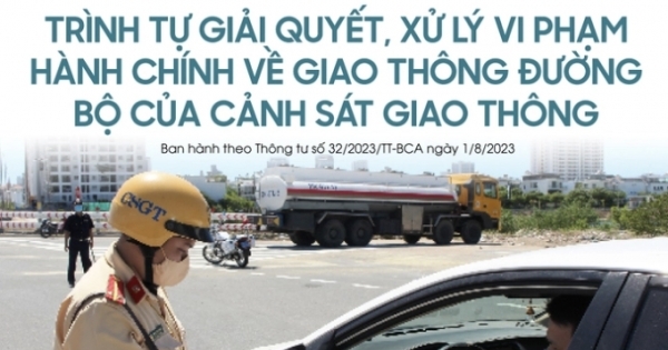 Trình tự giải quyết, xử lý vi phạm hành chính về giao thông đường bộ theo Thông tư số 32/2023/TT-BCA ngày 1/8/2023 của Bộ Công an có hiệu lực thi hành kể từ ngày 15 tháng 9 năm 2023.