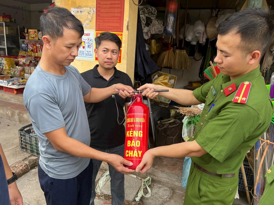 Vào chiều 12/6, Phòng Cảnh sát PCCC và CNCH đã tổ chức tặng và hướng dẫn người dân các huyện Phúc Thọ, Mỹ Đức lắp đặt hệ thống kẻng báo cháy tại các điểm chữa cháy công cộng trên địa bàn.