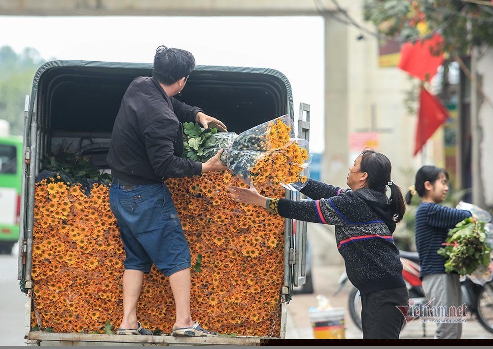 Hoa cúc vàng đã nợ rộ, chờ các thương lái đến mua