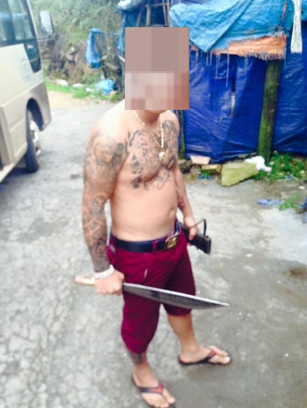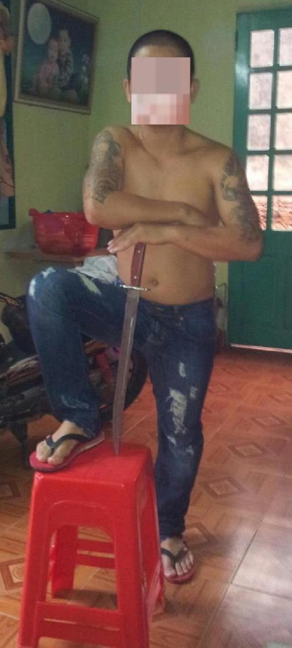 Đặc biệt, trong rất nhiều hình ảnh được công khai trên mạng xã hội, D.M.T xuất hiện khi trên tay lăm lăm vũ khí "nóng" để tăng thêm độ... "gấu". Từ đao, mã tấu, dao bầu đều đã được D.M.T... khoe ra.