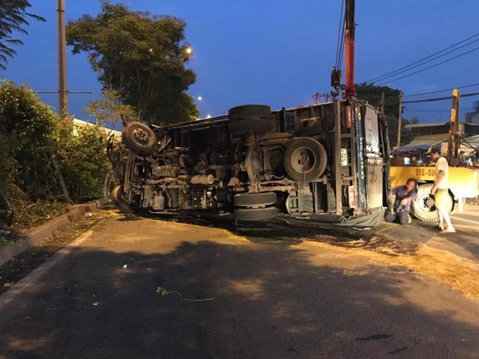 Theo đó, khoảng 17h30 chiều ngày 24/2, chiếc xe tải BKS 51C-238.83 chạy trên quốc lộ 1 hướng quận 12 về Suối Tiên. Khi đến gần ngã tư Gò Dưa (phường Tam Bình, quận Thủ Đức) thì bất ngờ mất lái lao qua trái cày nát hàng chục mét dải phân cách bằng sắt rồi lật nghiêng xuống đường.