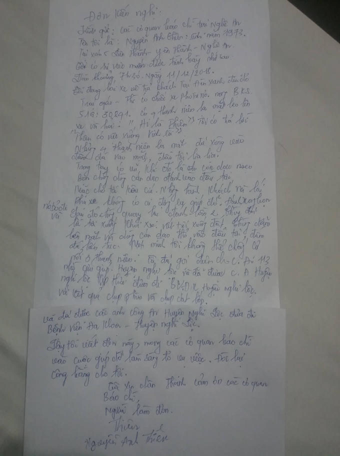 Sau đó 4 đối tượng xuống xe khách rồi rời khỏi hiện trường. Một lúc sau nhóm đối tượng trên tiếp tục quay lại và đánh đập anh Thiên thêm một lần nửa. “Nhóm này đánh tôi rồi lôi xuống khỏi xe và tiếp tục đánh. Tôi cũng không biết nhóm người đã hành hung mình là ai...”, anh Thiên cho biết.