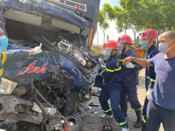 Sau cú va chạm kinh hoàng, ca bi chiếc xe tải bẹp dúm, tài xế tử vong tại chỗ thi thể mắc kẹt phía trong.