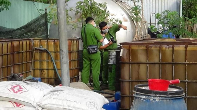 Thời điểm kiểm tra, cơ sở không xuất trình được các giấy tờ liên quan của việc sản xuất cũng như của 9 bồn chứa dầu thành phẩm với dung tích 1.000 lít/bồn, dầu DO trong bồn có màu vàng nhạt giống như các loại dầu nhớt đang được bán trên thị trường; vì vừa nấu xong nên dầu vẫn đang còn nóng, sủi bọt và bốc khói.