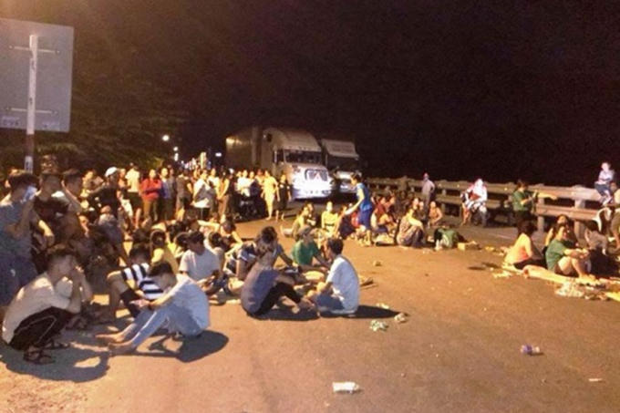 | Người dân chặn quốc lộ 1A đoạn đi qua xã Phổ Thạnh vào đêm ngày 2/9. |