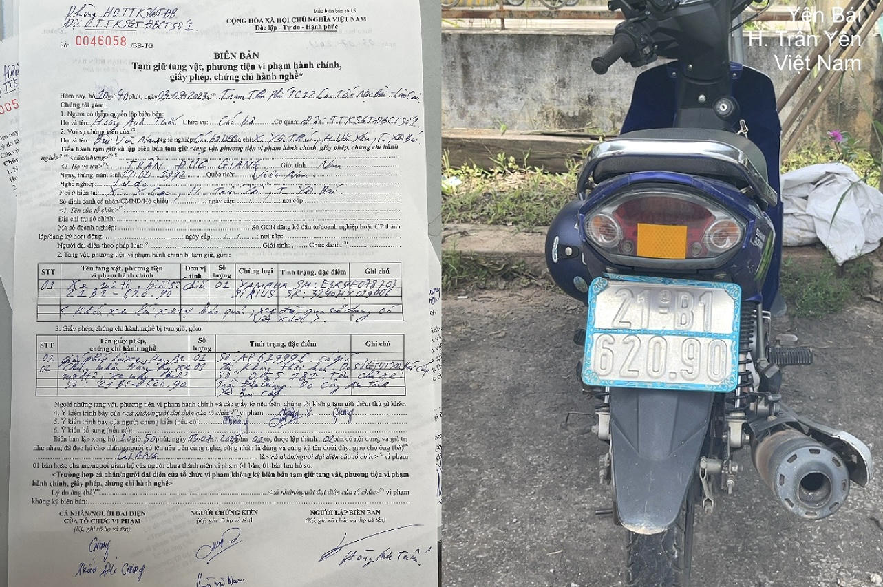 Tạm giữ giấy phép lái xe, đăng ký xe và phương tiện vi phạm.