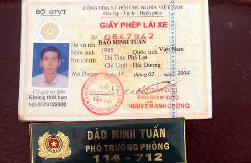Tại cơ quan Công an, Đào Minh Tuấn (SN 1985; trú tại Chí Linh, Hải Dương) đã thừa nhận mình không phải là cán bộ Công an, Tuấn đã đặt mua “số hiệu giả” qua mạng của một người không quen biết, với số tiền là 300 nghìn đồng.