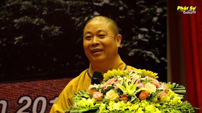 Thượng tọa Thích Thọ Lạc phát biểu trong một hội thảo.