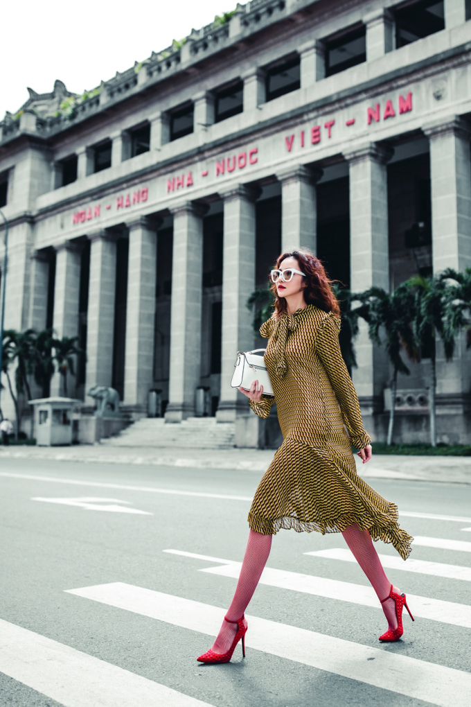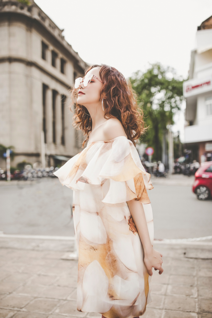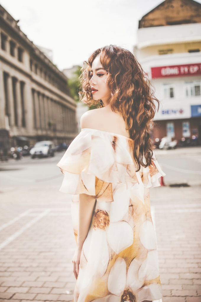 Trong những shoot hình mới, Kiều Ngân chọn cho mình 2 bộ đầm tuy khác nhau về màu sắc, kiểu dáng nhưng đều có điểm chung là những tiết bèo nhún vô cùng mềm mại, quyến rũ tạo nên hình ảnh một quý cô kiêu kỳ trên đường phố.