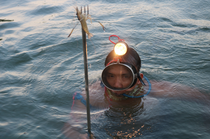 Nếu chỉ đánh lưới hoặc lặn xiên thông thường thì những ngư dân như anh Hiện chỉ bắt được rất ít tôm cá.