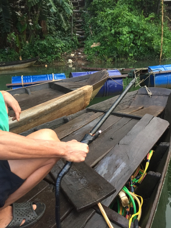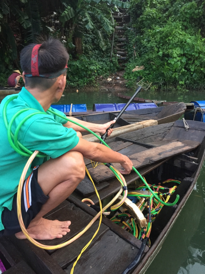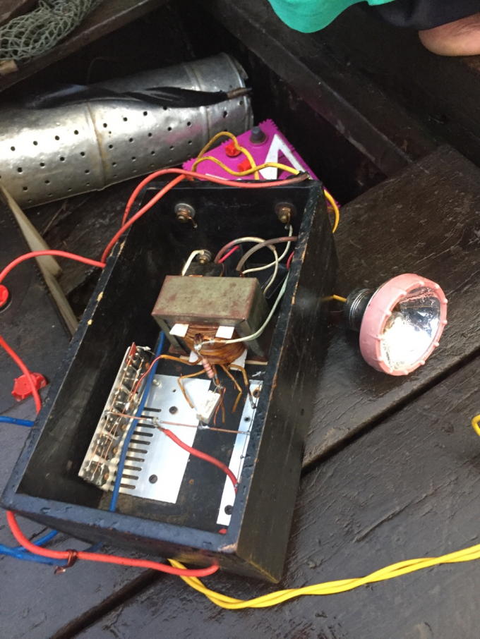 Dùng cả bộ dụng cụ kích điện công suất lớn để tận diệt nguồn thủy sản dưới lòng sông.