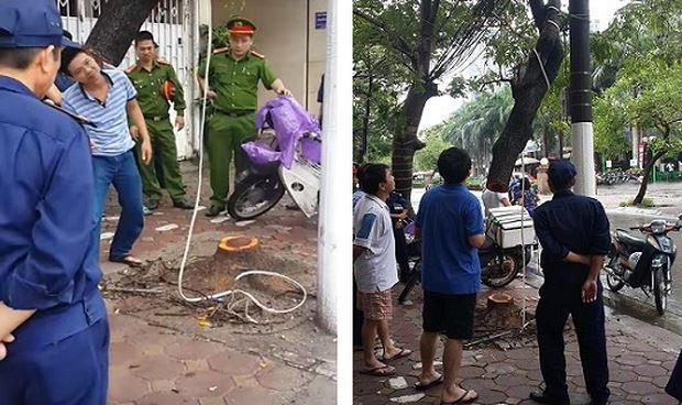 Theo thông tin trước đó, đêm qua (18/7), nhân cơ hội cơn bão số 3 đổ bộ vào đất liền gây ra mưa lớn tại Hà Nội, kẻ trộm đã cưa mất một cây sưa đỏ rất có giá trị trên phố Phan Kế Bính (Ba Đình - Hà Nội).