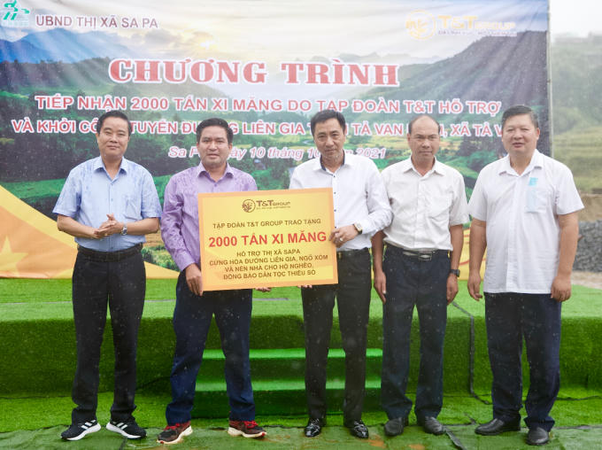 Nhằm chung tay cùng chính quyền và người dân thị xã Sa Pa trong việc cứng hóa các tuyến đường liên gia, ngõ xóm và nền nhà; đồng thời giúp các hộ nghèo, đồng bào dân tộc thiểu số tại các thôn bản đảm bảo điều kiện sống tối thiểu, Tập đoàn T&T Group đã quyết định hỗ trợ địa phương 2.000 tấn xi măng với tổng trị giá trên 3 tỷ đồng. Theo đó, số xi măng này sẽ được thị xã Sa Pa phân bổ cho 10 xã là Tả Van, Hoàng Liên, Bản Hồ, Mường Bo, Liên Minh, Trung Chải, Mường Hoa, Ngũ Chỉ Sơn và 2 phường Sa Pả, Ô Quý Hồ.