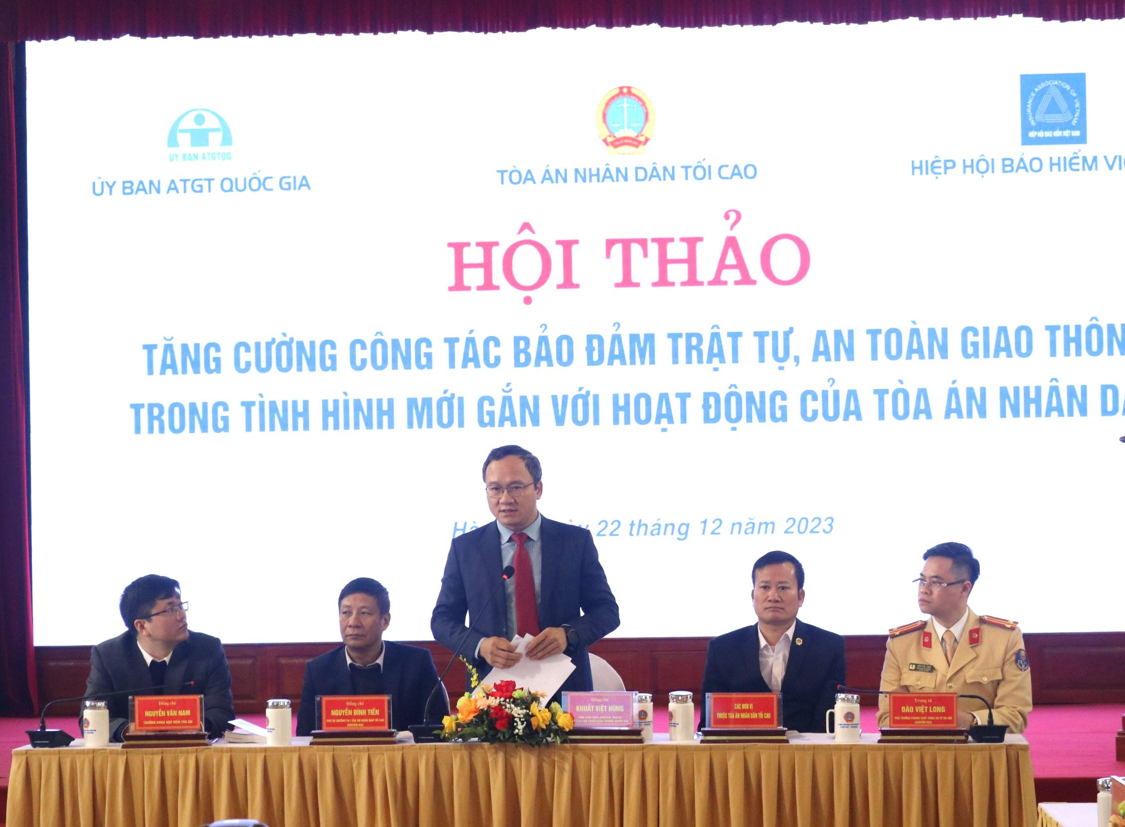 Hội thảo do Tòa án nhân dân Tối cao (TANDTC) phối hợp với Văn phòng Ủy ban An toàn giao thông Quốc gia, Quỹ Bảo hiểm xe cơ giới và các đơn vị liên quan tổ chức. Ông Nguyễn Văn Du, Phó Chánh án TANDTC và ông Khuất Việt Hùng, Phó Chủ tịch chuyên trách Ủy ban An toàn giao thông Quốc gia đồng chủ trì hội thảo.