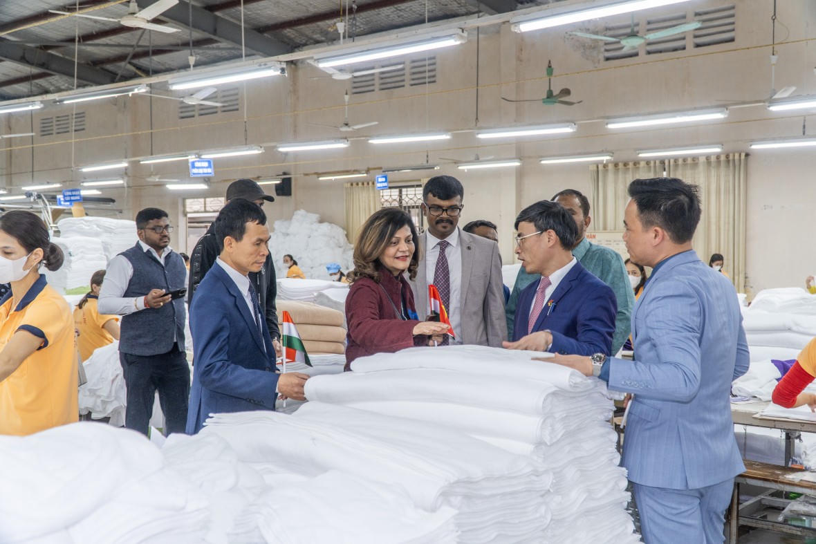 Về phía doanh nghiệp, ông Lê Minh Hiệu - Chủ tịch HĐQT Công ty chia sẻ: “Sau 35 năm hình thành và phát triển từ một doanh nghiệp dệt may, đến nay Công ty CP Bitexco Nam Long tự hào đã đóng góp tích cực cho phát triển kinh tế - xã hội của địa phương và đất nước. Hiện nay,Công ty vẫn nhập khẩu bông từ Ấn Độ và khoảng 90% sản phẩm được xuất khẩu sang thị trường Nhật Bản. Qua buổi làm việc hôm nay, chúng tôi kỳ vọng có thể mở rộng xuất khẩu các sản phẩm khăn, ga, bông sang thị trường Ấn Độ, qua đó góp phần nâng cao kim ngạch thương mại song phương Việt Nam - Ấn Độ.”