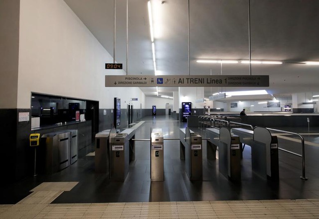 Ga tàu điện ngầm vắng vẻ ở Naples hôm 5/3.