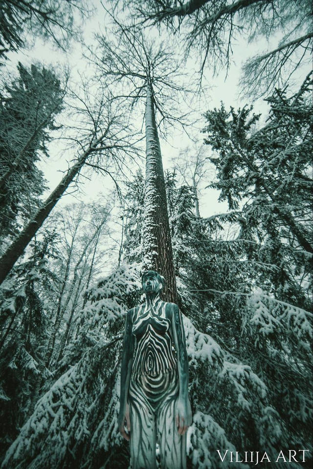 Nữ họa sĩ người Na Uy Vilija Vitkute luôn theo đuổi nghệ thuật “body-painting” với phong cách thể hiện mối liên hệ mật thiết giữa con người và thiên nhiên. Sự liên kết ấy thể hiện qua tinh thần của nhân vật, những gam màu và cả cảm xúc lồng ghép trong mỗi tác phẩm.