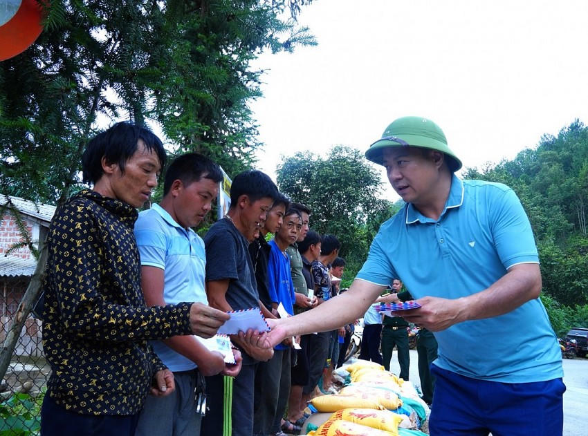 Chính quyền địa phương và nhóm thiện nguyện đã đến thăm hỏi, tặng quà các hộ gia đình phải di dời khẩn cấp do ảnh hưởng bởi đợt mưa lũ.