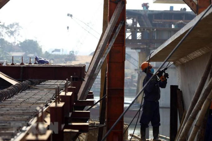 Công nhân đang thi công trên cầu Vĩnh An (tỉnh Thanh Hóa). (Ảnh: Huy Hùng/TTXVN)