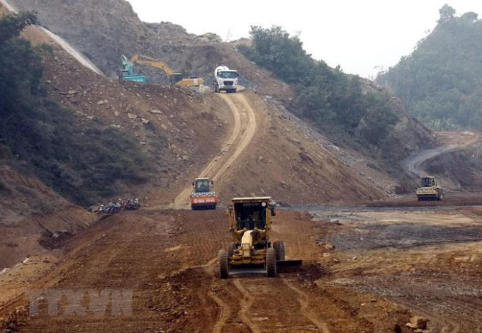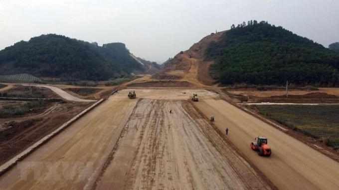 Trên toàn dự án cao tốc Mai Sơn-Quốc lộ 45 các nhà thầu đang triển khai 68 mũi thi công. (Ảnh: Huy Hùng/TTXVN)