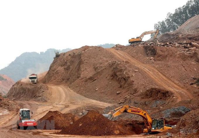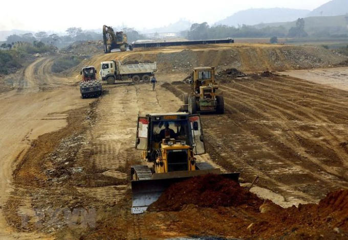 Thi công tại gói thầu 11 thuộc địa phận tỉnh Thanh Hóa. (Ảnh: Huy Hùng/TTXVN)